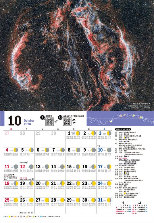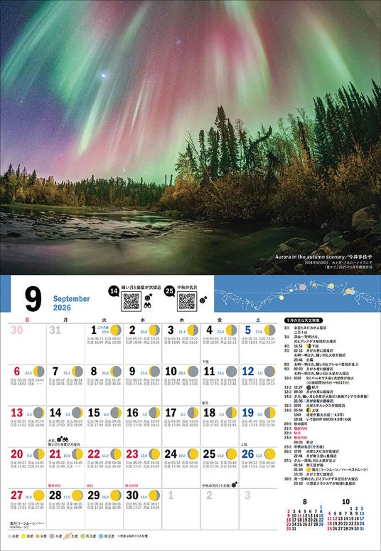 また、季節ごとの星空写真が楽しめる「壁掛けカレンダー」が付いた冊子「星空こよみ カレンダー 2026」も同日発売。2026年を星空とともに過ごすための情報が満載の2冊です。