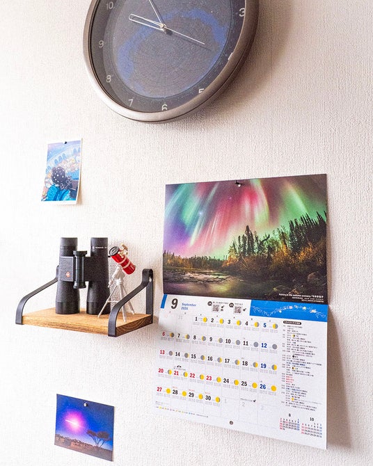 色鮮やかな銀河や複雑な構造を見せる分子雲、星雲・星団に、天の川と地上の景色、華やかな流星群やオーロラ、大彗星の姿など、表紙+12か月で計13枚の星空で魅せる壁掛けカレンダーです。嬉しい日月出没時刻や月齢、おもな天文現象の情報を求める天文ファンだけでなく、インテリアとして日常に彩りを求める方にもぴったり。カレンダーからも2次元コードでスマホアプリ「星空ナビ」にアクセスできます。