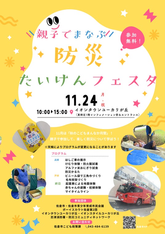 【千葉県佐倉市】「親子でまなぶ!防災たいけんフェスタ」を開催(11/24月・祝)