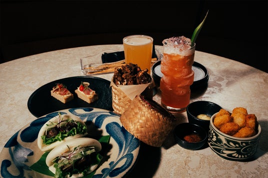 また、カクテルと呼応するように設計された、アジアンフュージョンのバーフードもご用意しています。海ぶどうや島豆腐、パイナップルポークなど、沖縄の素材にアジアのエッセンスを重ねた“小皿”たち。旬の食材やスパイスが織りなす香りと食感のレイヤーが広がり、カクテルの余韻と美しいハーモニーを生み出します。島の豊かな恵みを、グラスと一皿の響き合いを通じて、より深く体験していただけます。