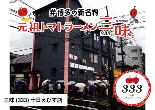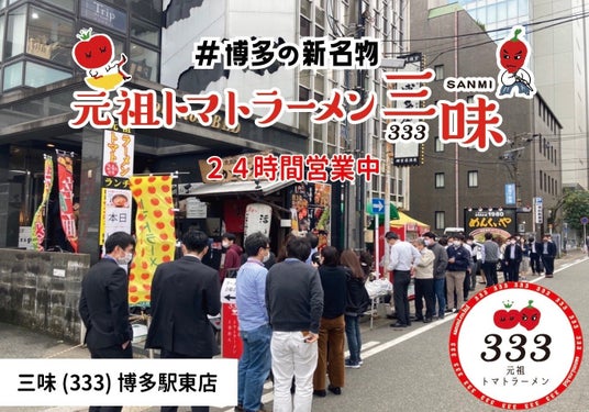 【大反響につき継続決定】福岡発祥の元祖トマトラーメン三味(333)10周年感謝祭、人気ラーメン3種「税込390円」が年末まで延長!