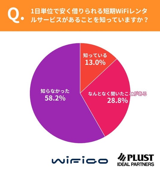 「短期WiFiレンタルサービスの存在を知っているか」という質問では、「知っている」「なんとなく聞いたことがある」を合わせても約4割(41.8%)にとどまりました。