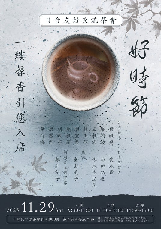 日台友好交流茶会「好時節」を11月29日開催【満席のため受付終了】台湾中華茶藝連合促進協会/空禅教室(岡山県玉野市)