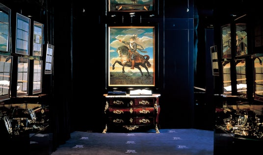 お客さまを最初にお迎えするのは、シックな濃紺に深く彩られたエントランスです。この濃紺の色は、フランス王家ブルボン王朝のシンボリックな色彩。トゥールダルジャンの歴史がフランスの歴史と深く結びつくことを触れ、日常の世界から、歴史と美意識が息づく特別な「東京のパリ」へ。