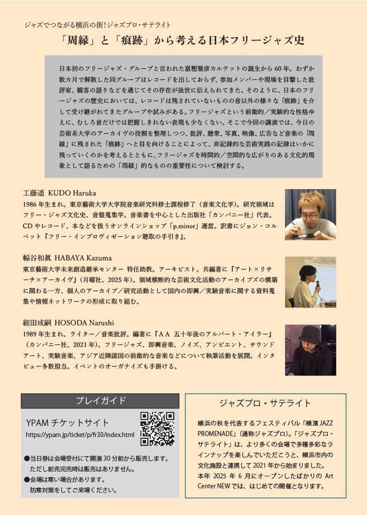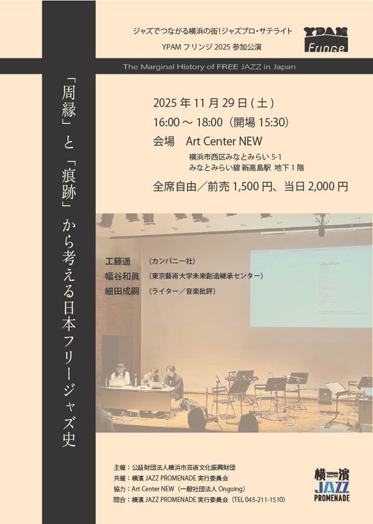 11月29日(土)、Art Center NEW(みなとみらい線新高島駅直結)において、「『周縁』と『痕跡』から考える日本フリージャズ史」と題したトークイベントを開催します。