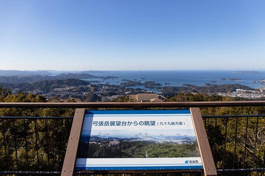 西側には遥か五島灘と九十九島の島々、南側には深い入り江の佐世保港、東側には美しい市街地が見渡せます。