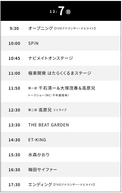 12/7(日)タイムテーブル