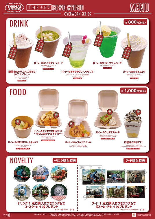 東京ドームシティ<THEキャラ CAFE STAND>では、グランドメニューに加え「きかんしゃトーマス OVERWORK SERIES」の期間限定オリジナルメニューをご用意して皆様のご来店をお待ちしております。