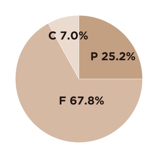『COMP Powder LC』(COMP パウダータイプ 糖質調整モデル)は、食事における糖質摂取量が気になる方のために、三大栄養素「Protein(たんぱく質)」「Fat(脂質)」「Carbohydrate(炭水化物)」の比率を調整した栄養食モデルです。『日本人の食事摂取基準(2025年版)』を参考に、糖質のエネルギー比率を抑えつつ、日常的な栄養摂取をサポートできるよう設計しています。
