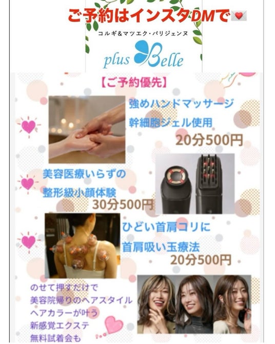 美容医療レベルのケアに近い体験を気軽に。小顔リフト、美容ジェルによる頭皮筋膜リリース、吸い玉療法など、多彩なアプローチ。