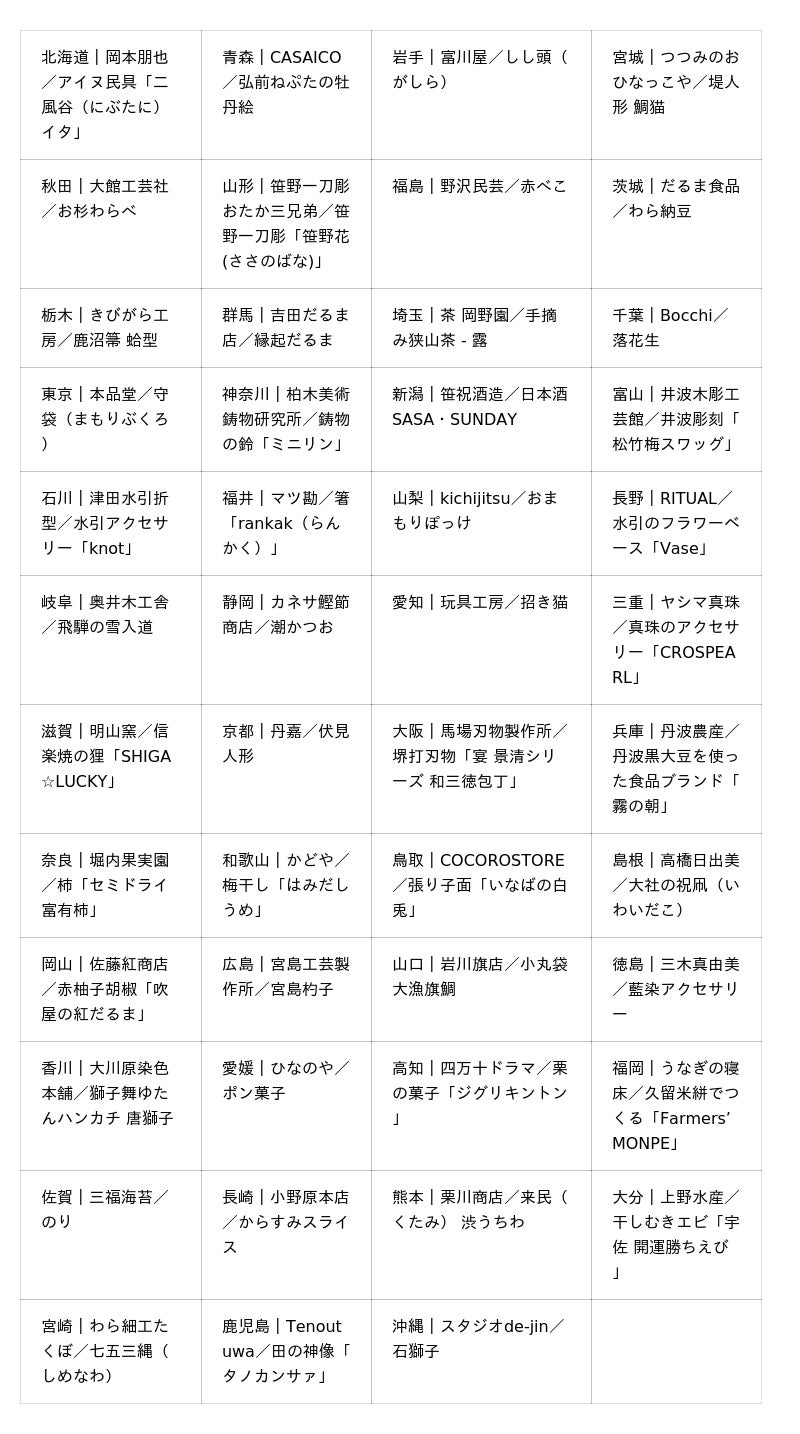 - その土地の産業、文化、歴史風土など、地域個性と関連したものづくりであること