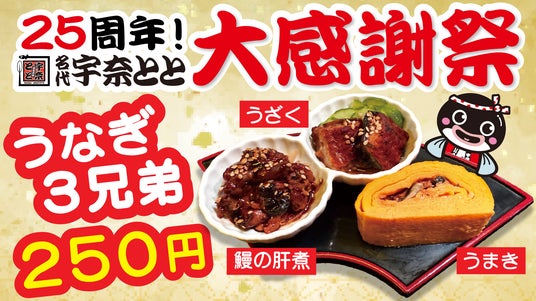 ぜひ #宇奈とと25周年 #宇奈とと感謝祭 #うなぎ三兄弟 をつけて投稿して教えてください!