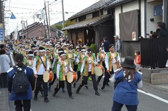 大名行列に合わせ、旧東海道は車両の交通規制が実施され、駐車場や沿道では催しもありました。二川宿本陣資料館では、市立二川中学校の生徒が物販や催しに協力し、福笑い、的当てなどの遊びで幼い子たちを楽しませました。吹奏楽や和太鼓の演奏、お笑いライブなどもありました。