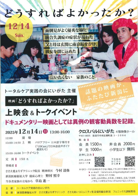 NSGグループの新潟医療福祉大学(以下、本学)心理健康学科は、12月14日(日)に開催される映画「どうすればよかったか?」の上映会および、専門家・当事者家族によるトークイベントに協賛として参加いたします。
