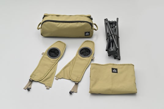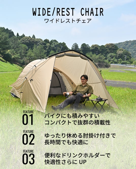 これまでの常識を打破し、バイクキャンプにも適した軽量コンパクト収納でありながら、しっかりと肘掛けのある快適な座り心地を実現したいという想いから、試作を重ねて生まれたチェアです。