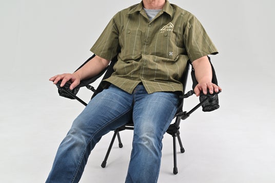 そして、肘掛けの角度はベルトで調整可能。使用者の体格や姿勢に合わせて微調整ができるため、焚き火を見ながらリラックスしたり、食事を取るときに姿勢を起こしたりと、シーンに合わせて最適な座り心地を作ることができます。