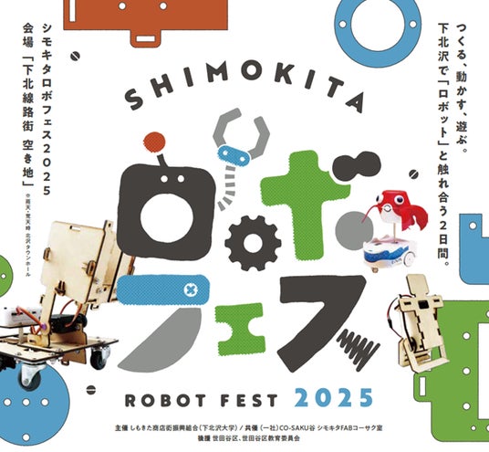 「シモキタロボフェス2025」は、誰もが気軽に立ち寄れる下北線路街空き地で、ロボットコンテスト、ロボット製作体験、ロボットゲーム、3Dプリンター実演などを行なう、ロボティクスを中心としたSTEAM※体験型イベントです。2024年11月に初開催し、今回で2回目となります。