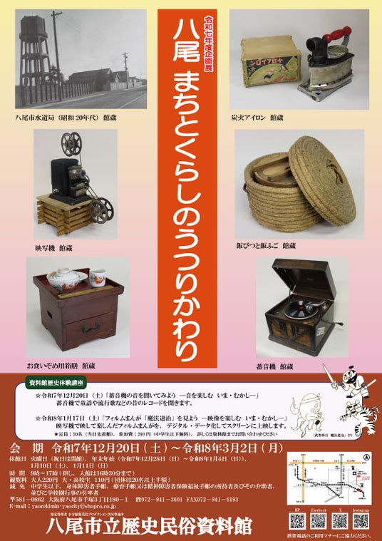 企画展「八尾 まちとくらしのうつりかわり」を八尾市立歴史民俗資料館にて開催! 令和7年12月20日(土)~