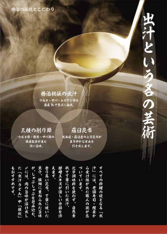 料理の礎となる「出汁」には、創業以来受け継がれてきた職人のこだわりが息づいています。