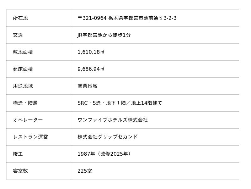 今回第5弾となる「THE KNOT UTSUNOMIYA」は、当社が取得した旧チサンホテル宇都宮を改修しており、いちごグループのワンファイブホテルズ株式会社がホテルを運営いたします。