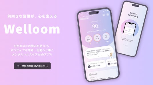 AI×ポジティブ認知行動療法によるメンタルケアWEBアプリ「Welloom」ベータ版リリースとテスター募集開始