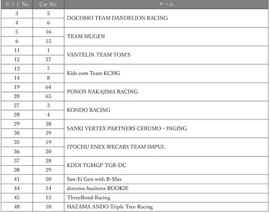 2025 SUPER FORMULA Rd.10,11,12 ピット割り