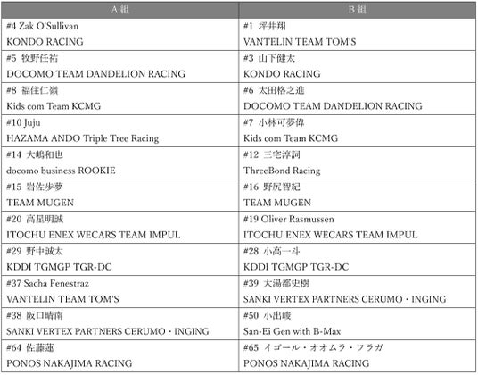 2025 SUPER FORMULA Rd.11 予選Q1 グループ分け(暫定)