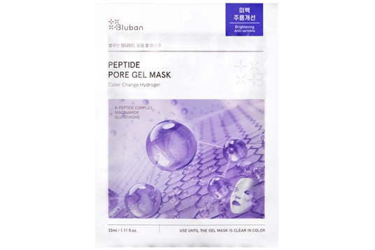 【Blubanゲルマスク】カラー変化するハイドロゲルを採用。肌に乗せるとゲルがフィルム化して収縮し、肌を包み込みながらうるおいをキープ。さらに、スキンフィット構造により肌への密着力を高め、角質層までしっかりアプローチ。スリーピングパックとして使用することも可能です。