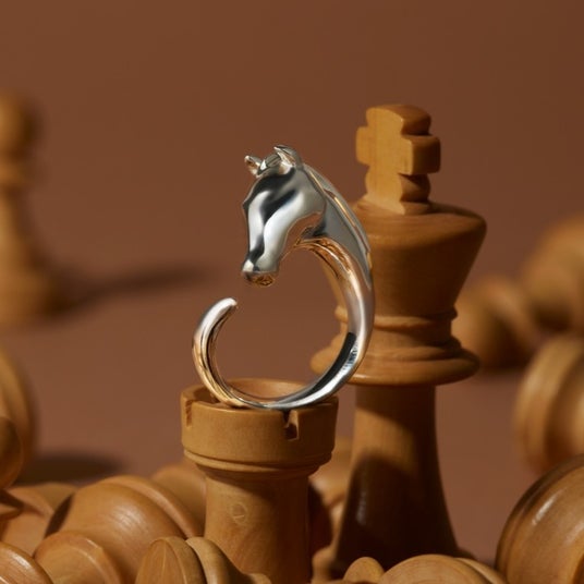 まるでチェスの駒のように立体的に仕上げた馬のシルエットに精緻なクラフトワークが際立つネックレス。