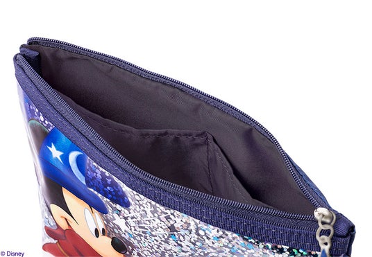 夜空の星を閉じ込めたような、クリアポーチ。キラキラ輝くスパンコールに心ときめくデザインです。魔法の帽子のチャーム付き!内ポケット付きで、使い勝手も抜群です。