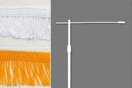 仕上がりに合わせて生地を選択可能。縁にフレンジを付けたり、専用ポールをセットすることもできます。