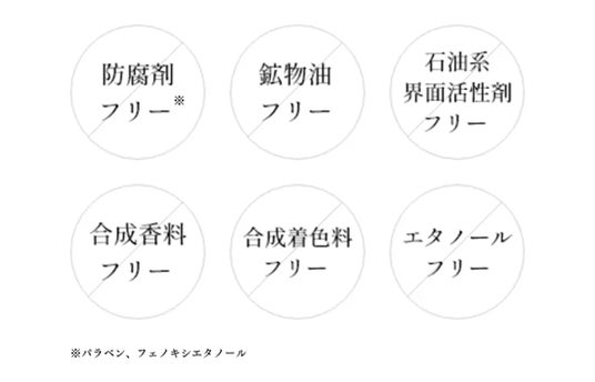 SHIKARIでは、肌に不必要と考えるものは含まない。肌に本当に必要と考えるものだけを届けるという理念のもと、合成着色料や合成香料、防腐剤(パラベン・フェノキシエタノール)などの添加物を含まない製品開発を行っています。