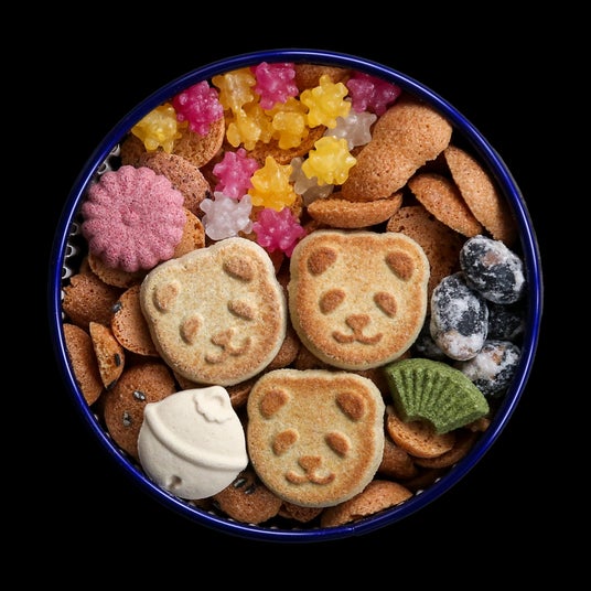バター不使用の和風クッキーや金平糖・和三盆や落雁・黒豆など約20種類の干菓子が楽しめる銀座 菊廼舎の代表銘菓「冨貴寄」に可愛いパンダの落雁が3個入った東京駅限定商品です。