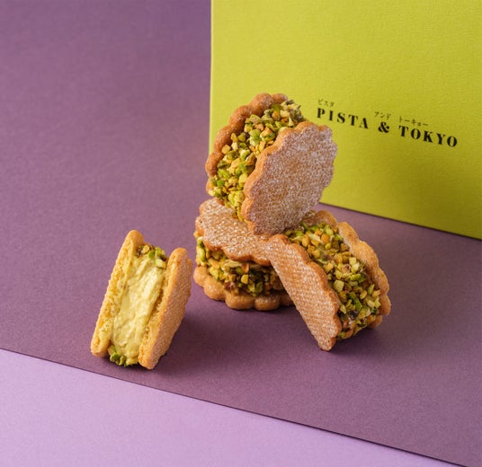 ピスタチオバタークリームにローストしたピスタチオを贅沢にあしらったサンドクッキーです。薫り・コク・食感、ピスタチオの特徴を存分に味わえます。