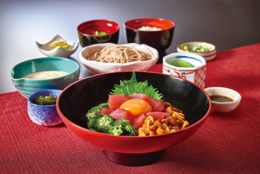 具材を混ぜ合わせれば、とろりとした食感とまぐろの旨みが絶妙に絡み合います。ごはんにかけて豪快に、お蕎麦にのせてさっぱりと楽しめる、満足感あふれる定食です。