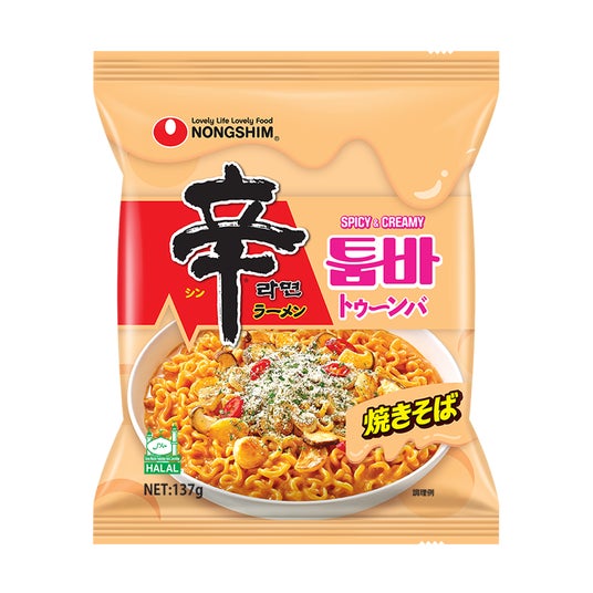 2025年ヒット商品ベスト30にも選ばれた、話題のピリ辛クリームパスタ風「辛ラーメン トゥーンバ」韓国を中心に大流行しているピリ辛クリームパスタ「Toomba(トゥーンバ)」が辛ラーメンになって新登場。濃厚なクリームパスタのようなソースにもちもちの麺が絡み、さらに“うまからっ!”なアクセントが加わった絶妙な組み合わせ。韓国では2024年9月にカップタイプ、同年10月に袋麺タイプが発売され、4ヶ月間で2,500万個を販売(韓国国内での袋麺・カップ合計販売数量)する記録的ヒット製品となっています。日本でも2025年2月に袋麺タイプを発売すると、SNSを中心に瞬く間に人気に火がつき、「日経トレンディ 2025年ヒット商品ベスト30」を韓国ラーメンとして初受賞(18位)。今最も勢いに乗る辛ラーメンです。