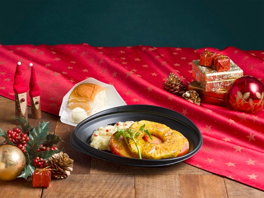 ハワイのホリデーシーズンメニューの1つとして登場する『クリスマス ハワイアン ハムステーキ with KING'S HAWAIIAN』は、こんがり焼いた厚切りのハムに甘酸っぱいパイナップル、ハニーマスタードソースをかけたハワイのホリデーシーズンに親しまれているメニューです。大人気の「KING'S HAWAIIAN」オリジナルハワイアンスウィートロールとお楽しみください。