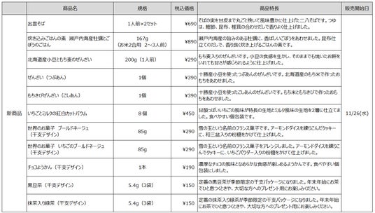今回は、年末年始にぴったりな「出雲そば」や「炊き込みごはんの素 瀬戸内海産牡蠣とごぼうのごはん」、「ぜんざい」、「いちごとミルクの紅白カットバウム」などの新商品や、昨年もご好評いただいた「すゑひろがりカレー」や「福飴」、「紅白まんじゅう」などを発売します。また、ご挨拶やギフトにも使える2026年の干支である「馬」デザインのパッケージを使った商品を拡充し、ラインナップを豊富に取り揃えて展開します。