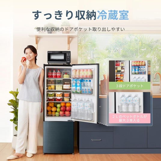 コンパクトなのに、中はしっかり収納!飲み物のまとめ買いも、週末の食材ストックも、これ一台で実現します。一人暮らしにも、二人での暮らしにも、きっと寄り添う一台!!