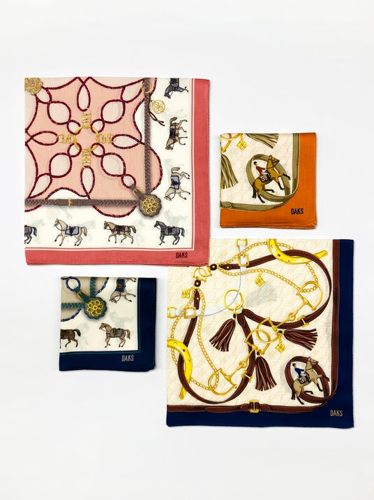 スカーフ調の柄がエレガントな印象のトラッドなハンカチ。