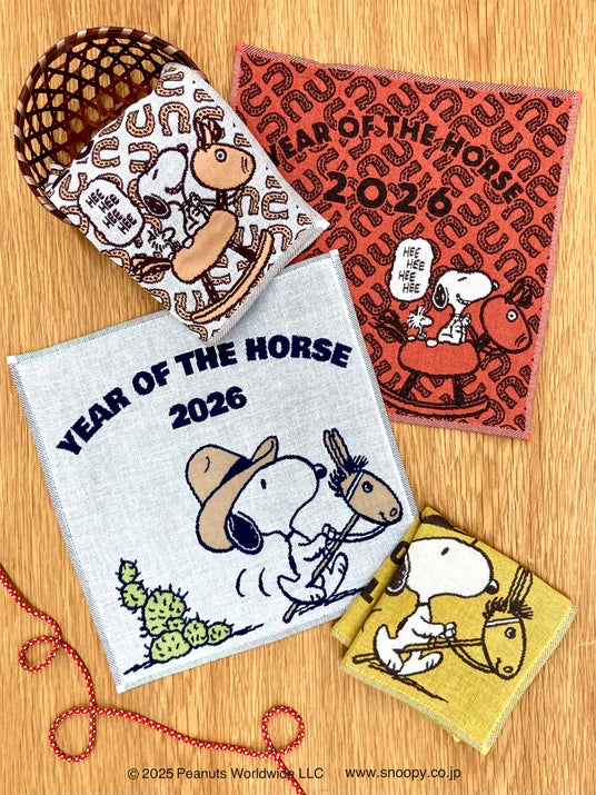馬にまたがったスヌーピーが可愛らしいシリーズ。午年にぴったりな特別感のあるデザインです。
