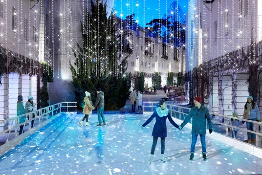 夜も楽しめるスケートリンク
