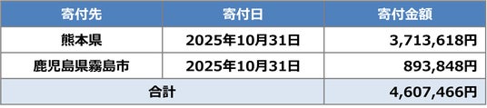 「令和7年8月大雨災害」の復興支援として熊本県、鹿児島県霧島市へ合計4,607千円余を義援金として寄付