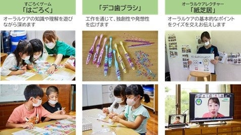 体験プログラムでは、正しいオーラルヘルスケアに関する紙芝居や自分だけのオリジナル歯ブラシをつくる工作(デコ歯ブラシ)、遊びながらオーラルヘルスケアについて学ぶことができるオリジナルゲーム(「はごろく」「もぐしゃか」「ハハハ」)などを通じて、子どもたちは歯と口に関する基本的な知識を習得するとともに、「褒められる体験」、「他者とコミュニケーションをとる体験」、「みんなで楽しく遊びながら学ぶ体験」をしています。2025年10月末までに、全国のこども食堂2,600ヵ所・13万人以上の子どもたちにこの体験プログラムのキットを提供しました。