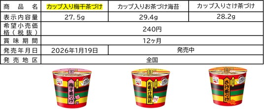 これを受けて、この度「カップ入り 梅干茶づけ」を発売することにいたしました。