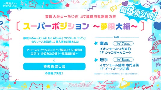 夢限大みゅーたいぷ 47都道府県制覇の旅「スーパーポジション ~夢限大編~」の第3弾となる、青森県・岩手県での開催が決定しました。