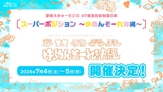 2026年7月4日(土)・5日(日)に、夢限大みゅーたいぷ 47都道府県制覇の旅「スーパーポジション ~ゆめんそーれ沖縄~」の開催が決定しました。詳細は後日公開となります。