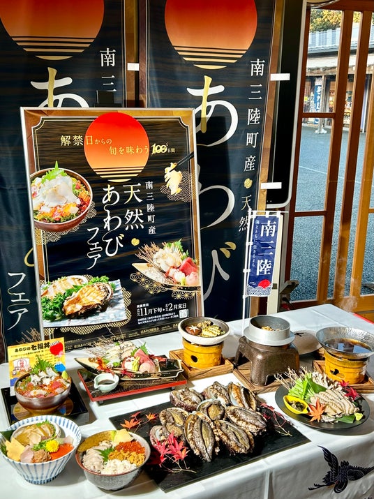 一般社団法人南三陸町観光協会・食の魅力プロモーション部会(部会長:及川満)主催のもと、2025年11月21日(金)より「南三陸町産 天然あわびフェア ~解禁日からの旬を味わう100日間~」を開催いたします。