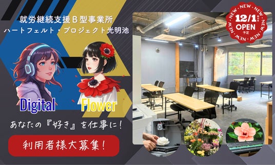 2025年12月1日、大阪府和泉市に就労継続支援B型事業所『ハートフェルト・プロジェクト光明池』を開所します。当事業所は"フラワーショップと連携したお花の仕事"と"ITスキルや3Dプリンターを活用したデジタルものづくり"を通して、一人ひとりの「好き」や「得意」を育みながら、心からのやりがいと工賃アップの両立を目指します。