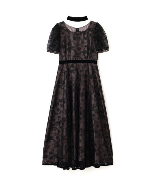繊細なレースが美しく映える、ベロアチョーカー付きドレス。